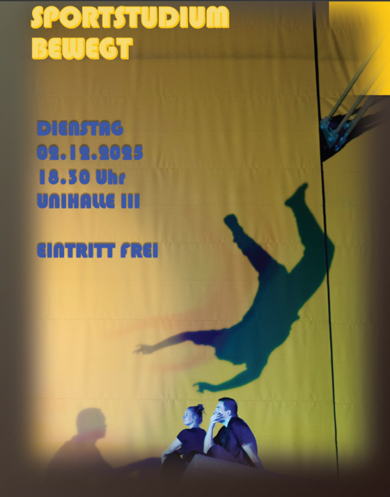 Am Di., 12. Dezember 2025 findet wieder unsere Aufführung 'sportstudium bewegt' statt, in der eine Auswahl von Prüfungsstücken Studierender aus den methodisch-praktischen Lehrveranstaltungen der Bereiche Gymnastik, Tanz und Turnen aufgeführt wird.